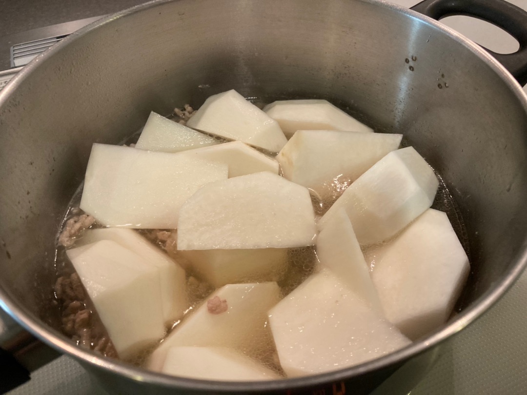 メインが濃い味なので副菜は薄味に仕上げたカブのそぼろ煮^^