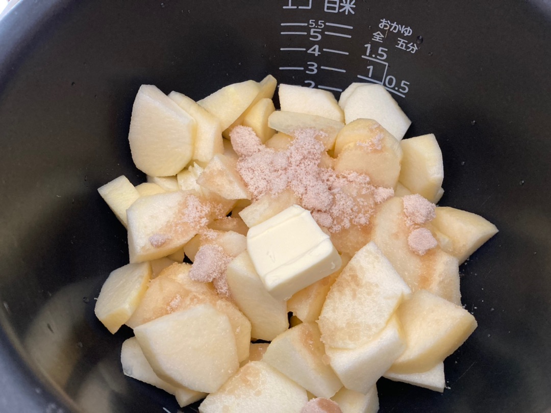 りんごと三温糖、そしてバターも入れて早炊きスイッチオーン♪^^