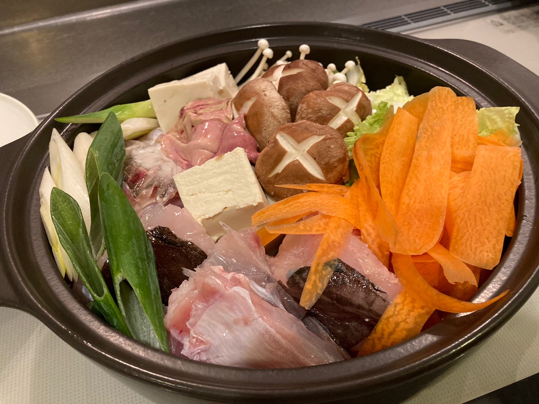 中身がアラだけだったので、後から追加で鶏肉も用意していたのですが