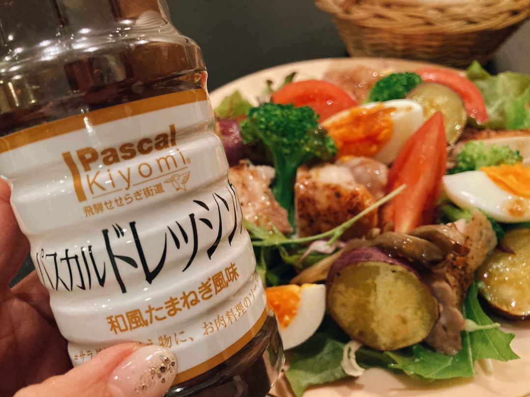 ちょうど紅葉見に行ってきたママ友からのお土産でパスカル清見の玉ねぎドレッシングをもらってたので・・・・