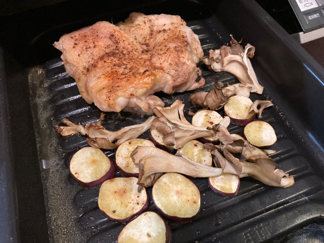 (鶏もも肉は脂が出るのでオリーブオイルはかけませんでした)