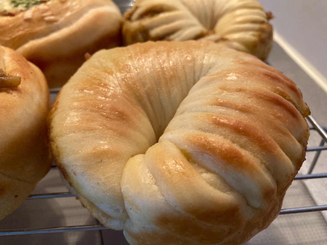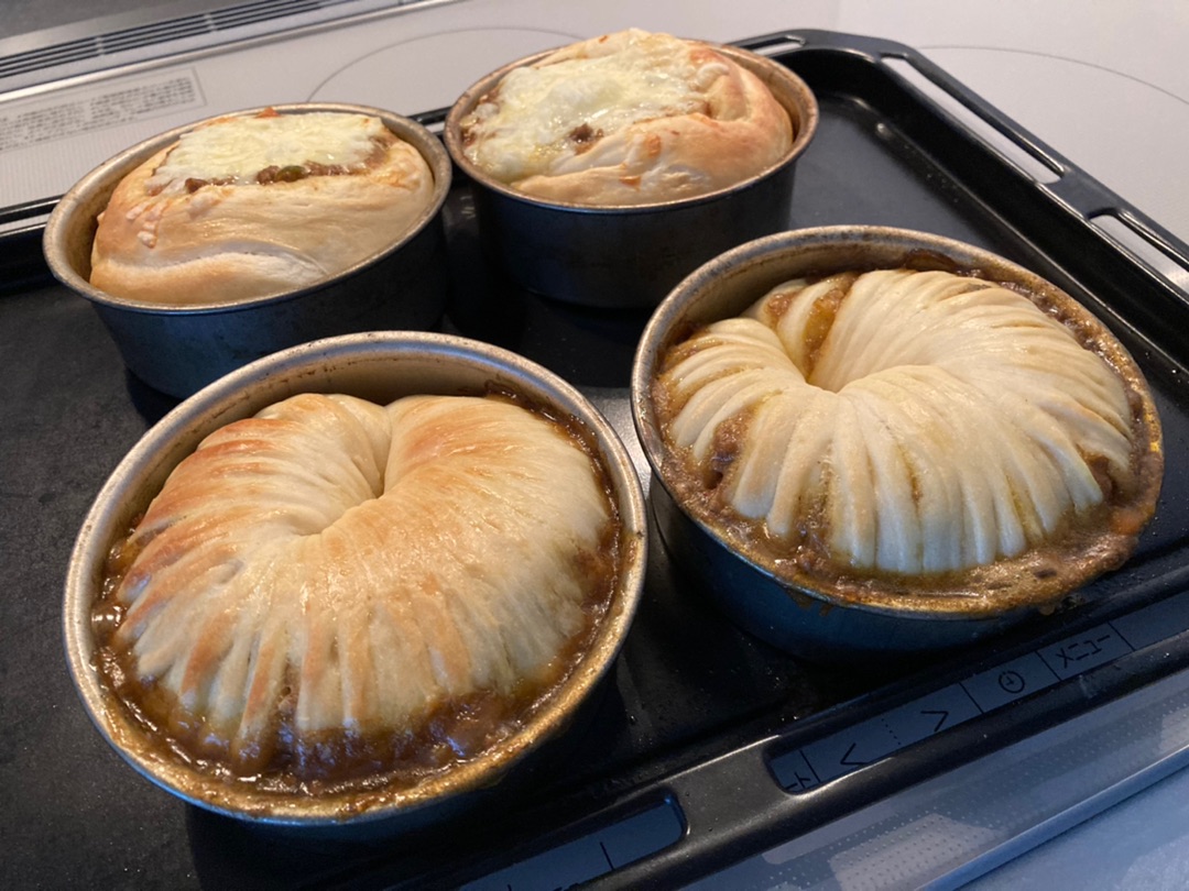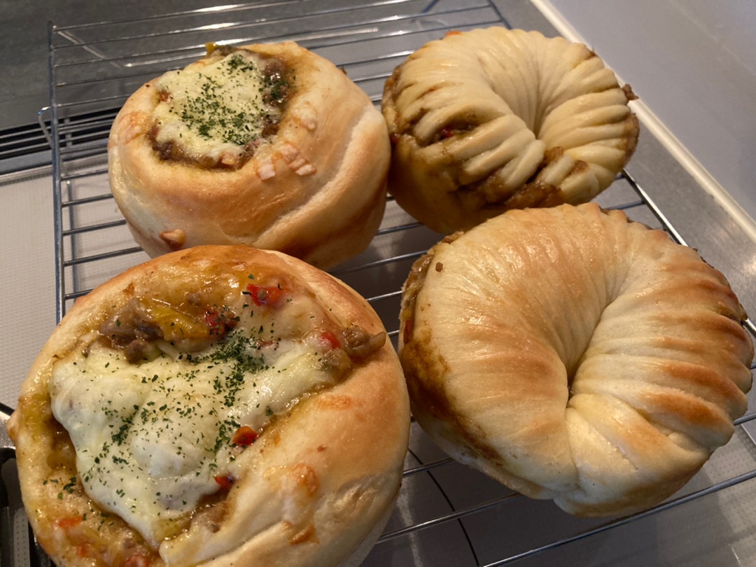 ちょっと大きめのカレーパン、成型違いで2個ずつにしました^^