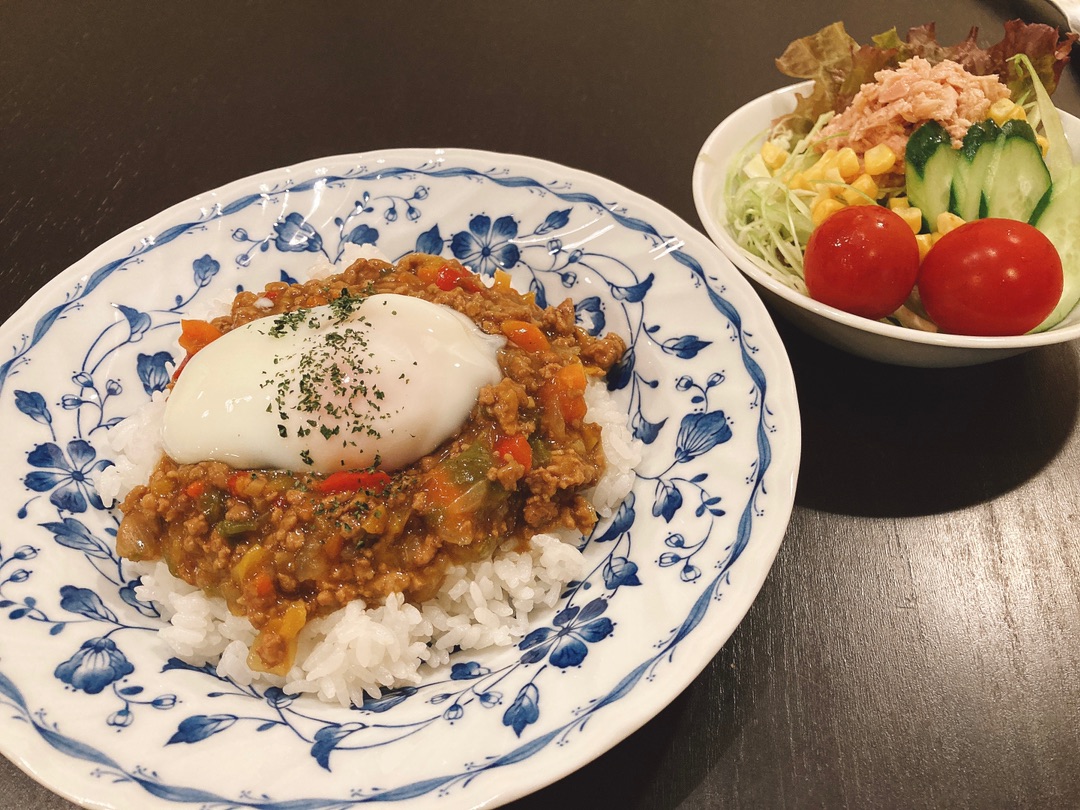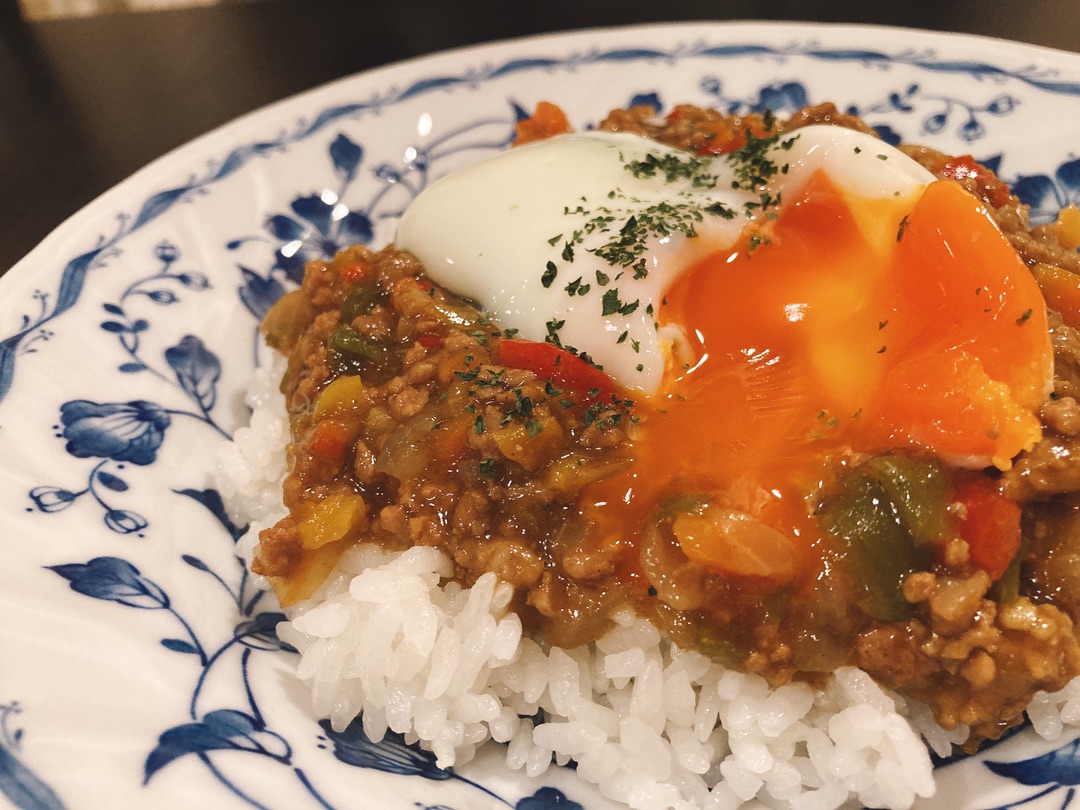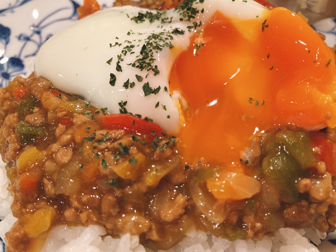 キーマカレーには温卵が必須!(・`ω´・)キリッ