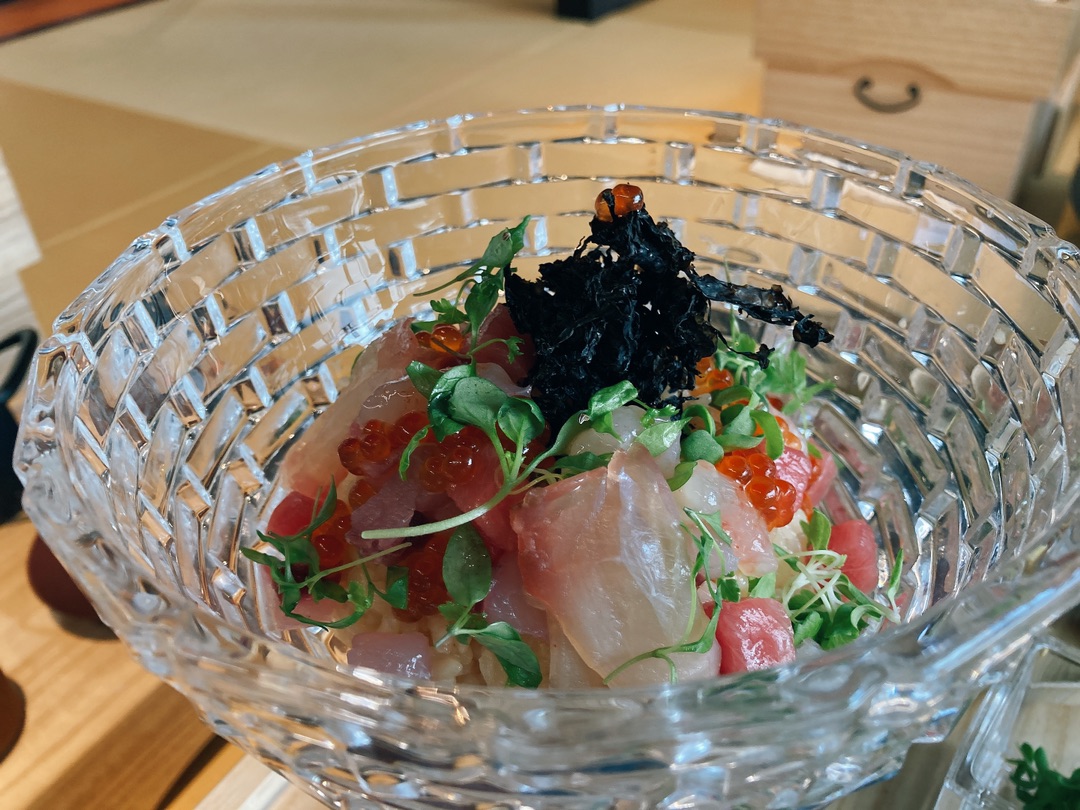 出来上がった私の海鮮丼がこちら!^^ 子の器もキレイなんですよね~