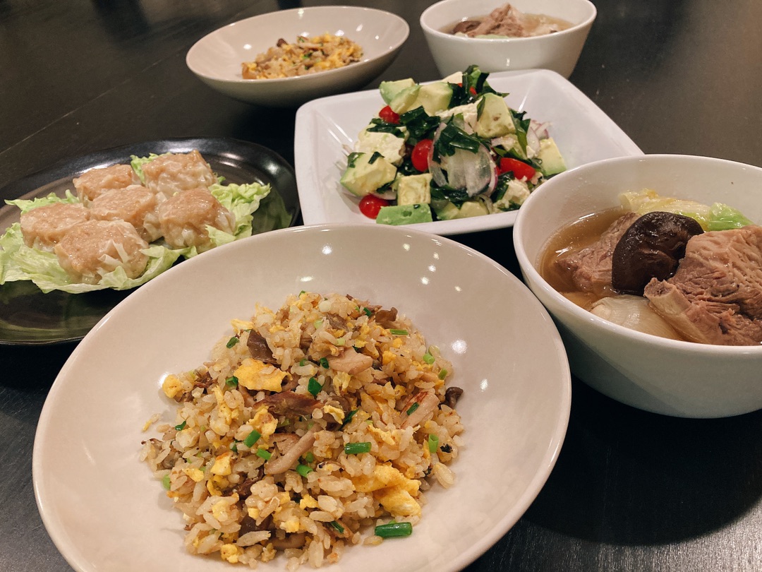 ごはんものは昨日のサバときのこの混ぜごはんの残りをチャーハンにしました^^
