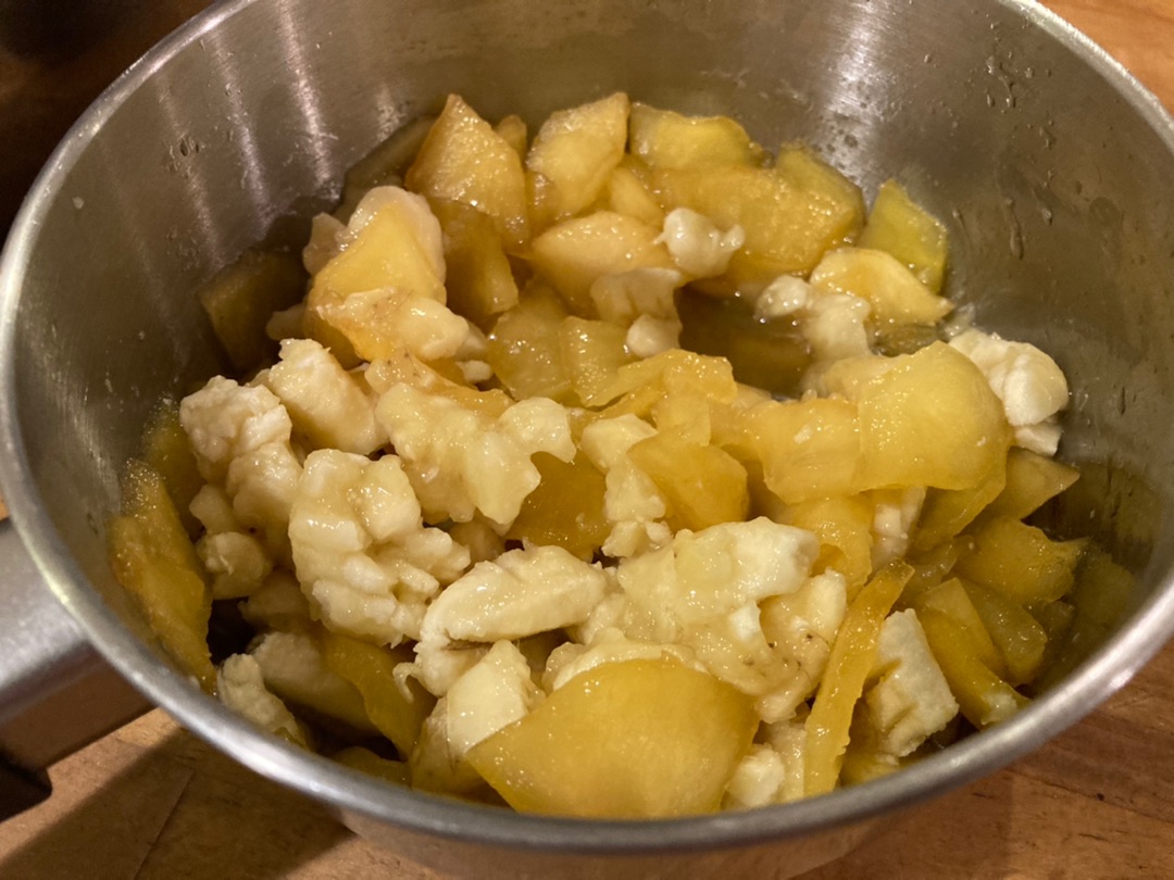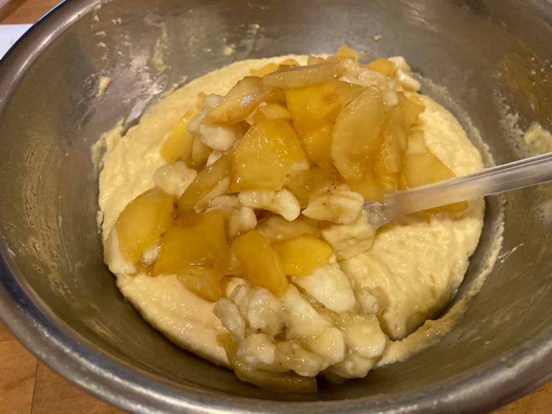 ちょうどスカスカになったりんご使って甘煮を作ったので・・・ 全部を生地にまぜまぜー!