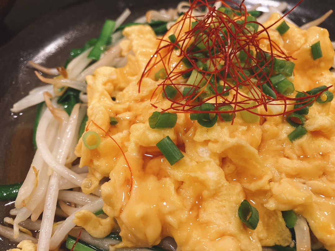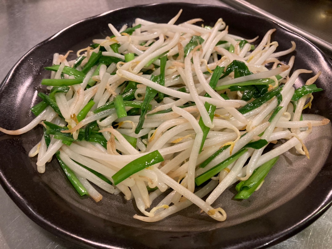 これ、下のもやしとニラの炒めものに豚バラ肉でも入れたら立派なメインにもなりますので