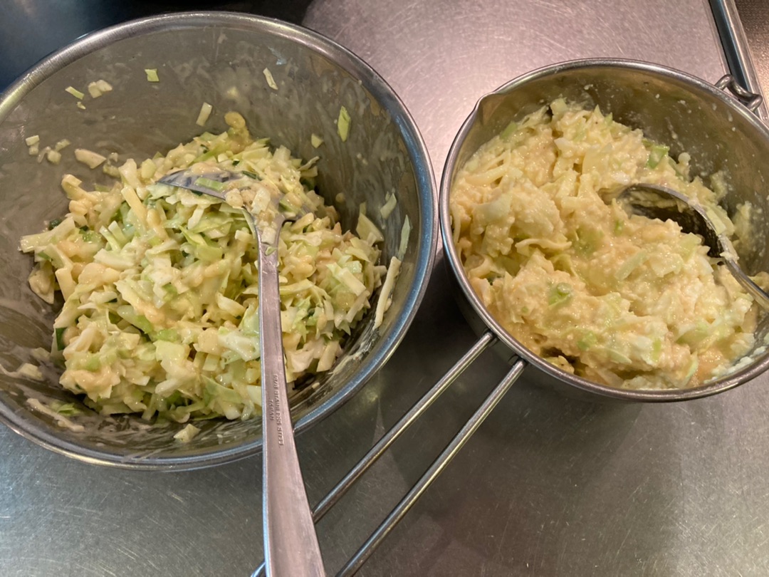 左が普通の生地、右が豆腐入りの生地です^^