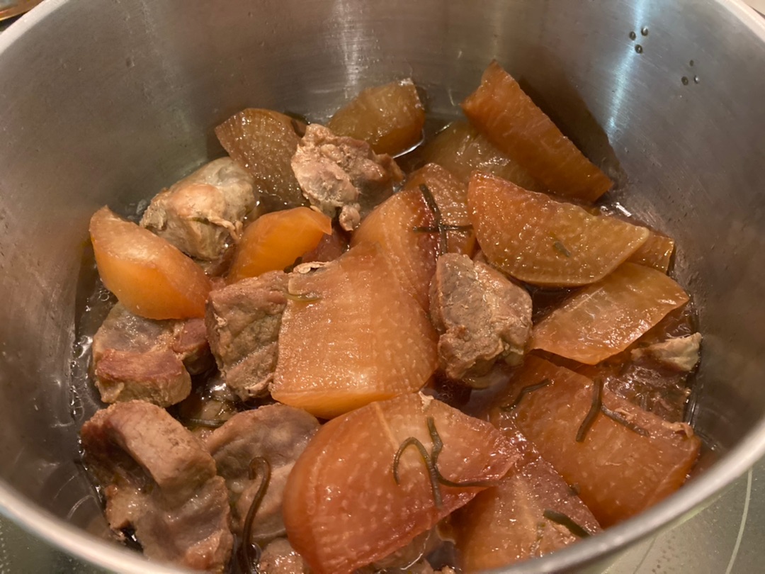 まぁいいや、とにかく大根と豚肉の煮物です!^^ 豚バラ肉よりは脂が少ないのでちょっとパサつきますが、脂っぽいのがニガテな方はカタ肉のほうがいいかも