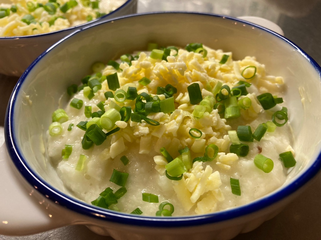炊飯器から鍋に移したの図。 すりおろした長芋をオーブントースターで焼くだけの簡単グラタン