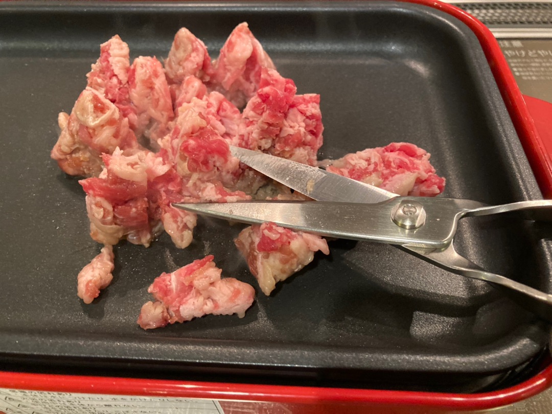 で、さっきの焼けたお肉は一旦お皿に退避させておいて