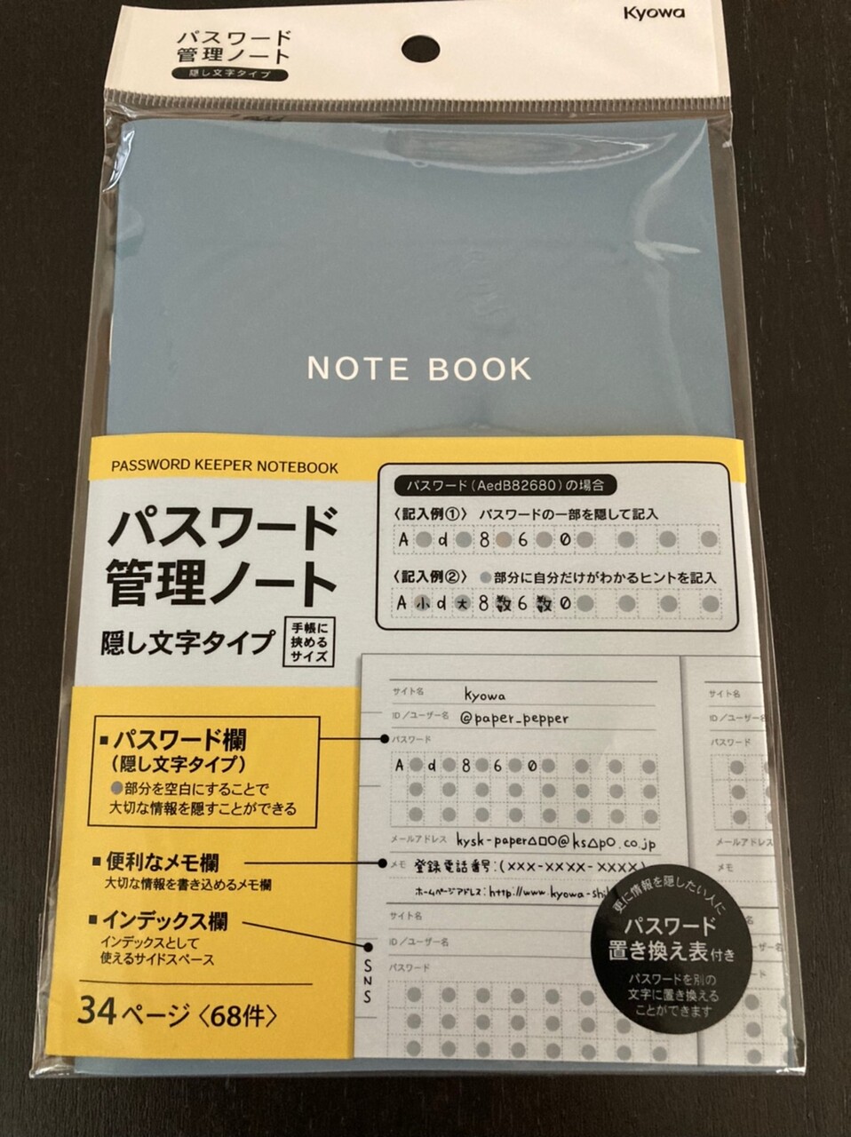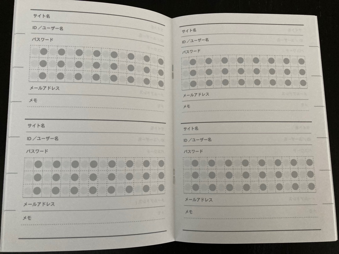 あと、一緒にパスワード管理ノートというのが売ってたので買ってみたんですけど・・・・