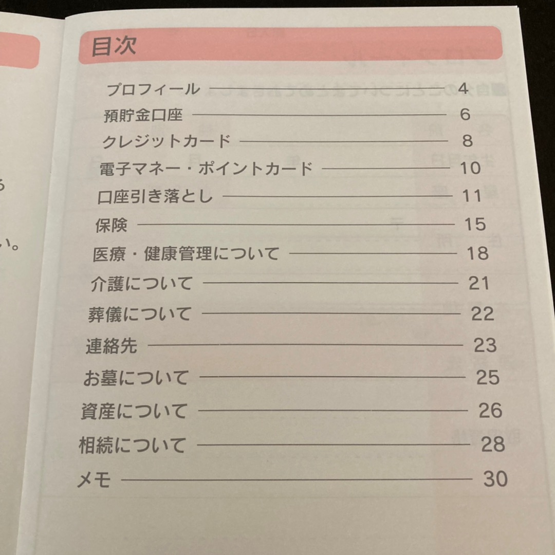 ダラダラ書く必要はなく、保険、不動産、手持ちクレカの支払い残、お墓のことが最低限記入してあるだけで手間が全く違いますよー。