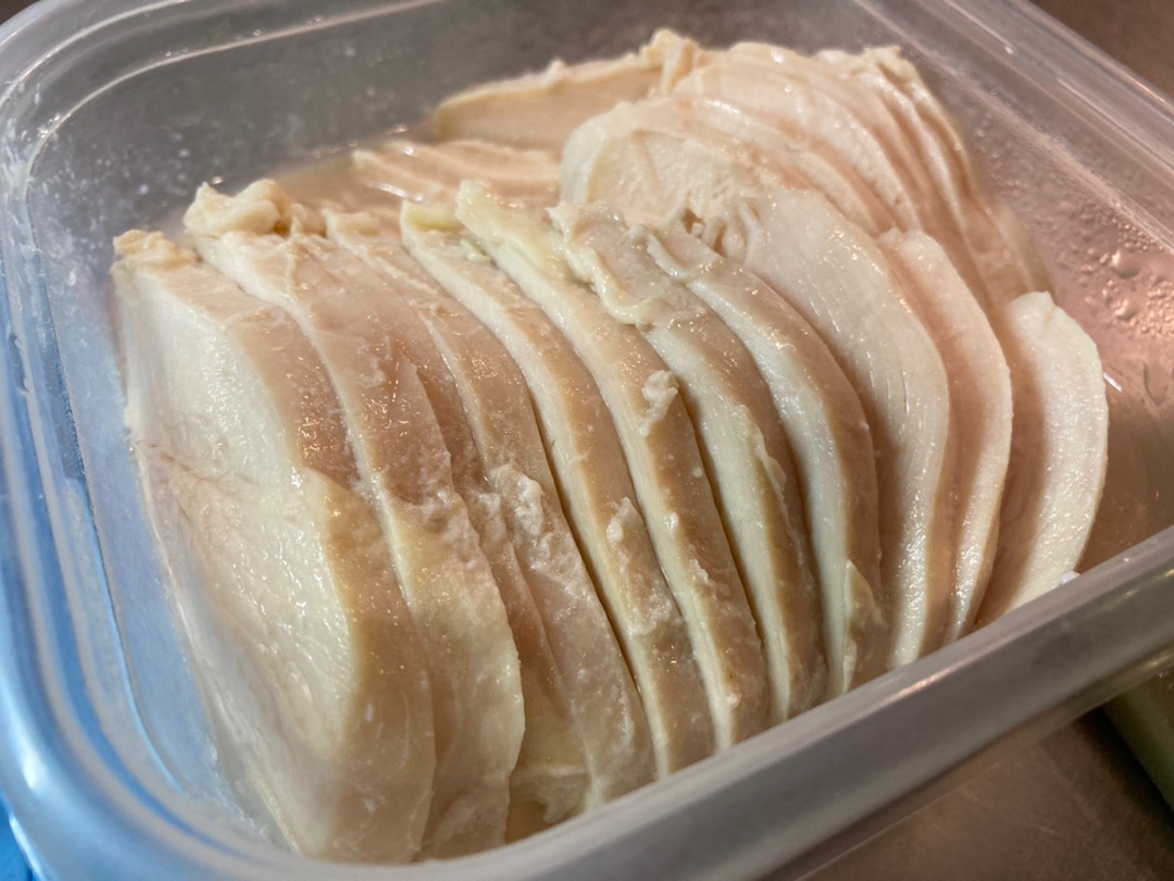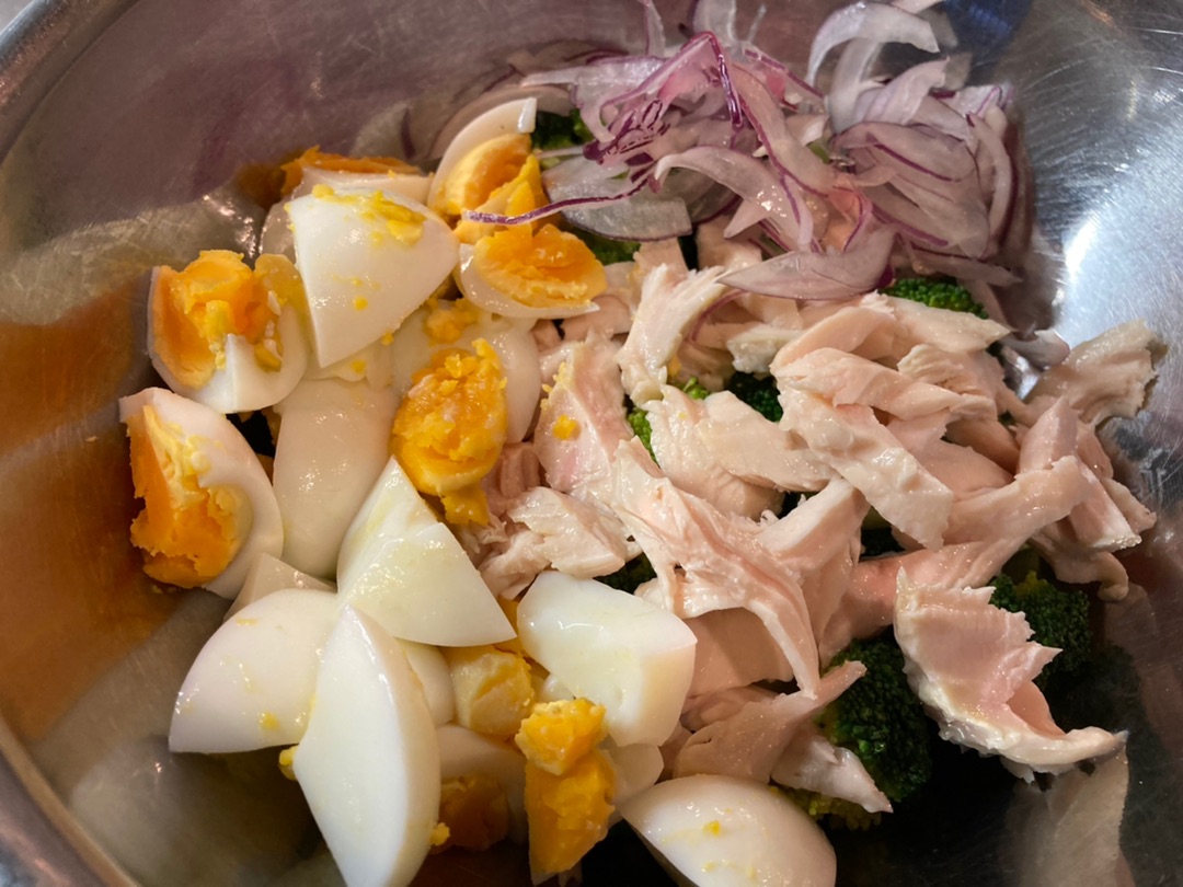 メインが魚なのでこの日はサラダにもお肉も入れてバランスよく♪(ってムネ肉だけど:笑)