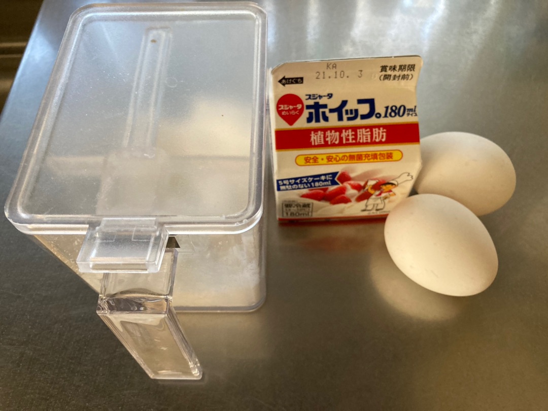 生クリームのほうに卵のヤツを入れるので、それを頭に入れてボウルは選んでくださいね!