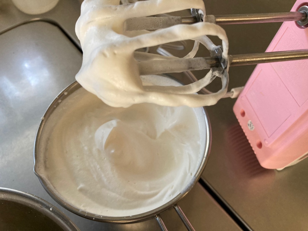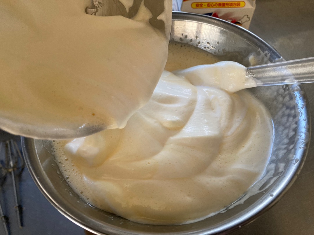 本当はもったりするまで泡立てないといけないのですが時間の関係上これぐらいで