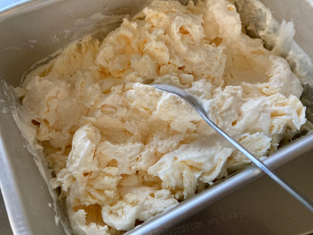 途中(2時間ぐらいたったら)一度取り出してかきまぜてから再度冷凍すると空気を含んで柔らかいアイスができます