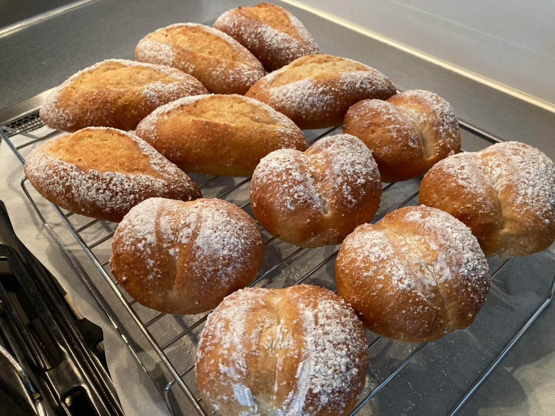 ホームベーカリー様々で、そのまま食パンもあるけど家族の要望もあり一次発酵までホームベーカリーであとは手製とか。