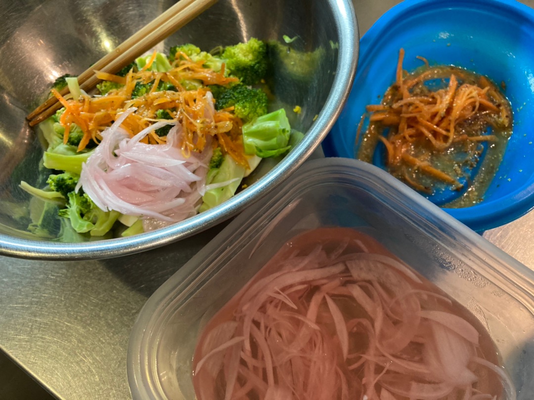 昨日は作り置きのキャロットラペと赤玉ねぎのマリネも入れたので彩りがよくなりました~!