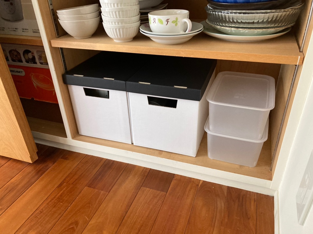 2箱入れて余ったスペースには、無印っぽい(でももちろんセリア♡)半透明のボックスを2段入れてみました![]()