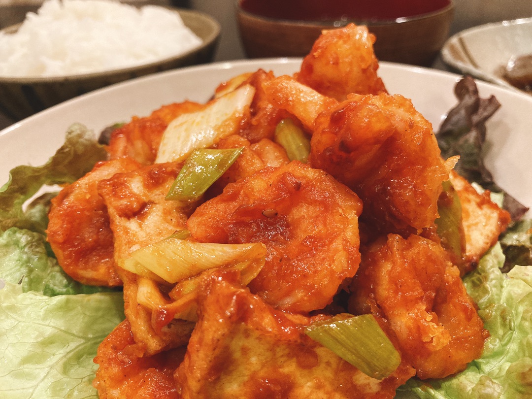 昨日のエビチリは焼肉のタレを利用して簡単に作ってみました!