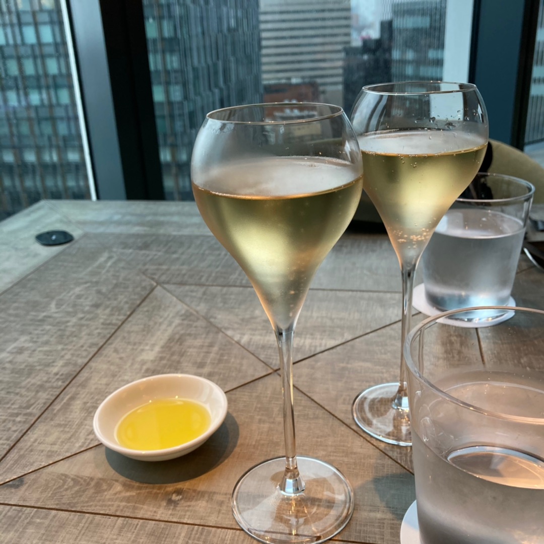前菜、スープ、メイン、デザート、食後のカフェにスパークリングワイン1杯がついて1人3,740円でした。ランチにしてはちょっとお高めですが、今回はお祝いなのでちょっと奮発♪