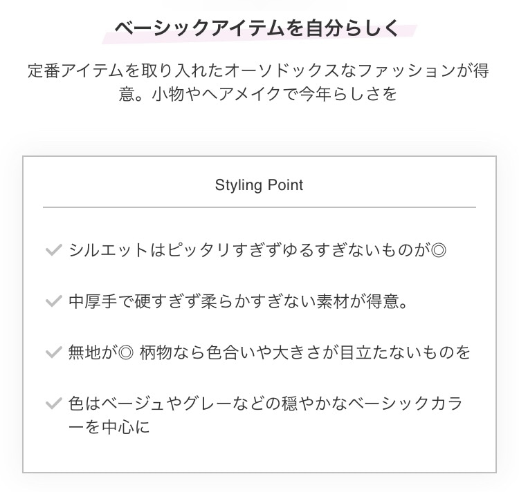 あなたにはこんなファッションが似合いますという例まで提示してくれます