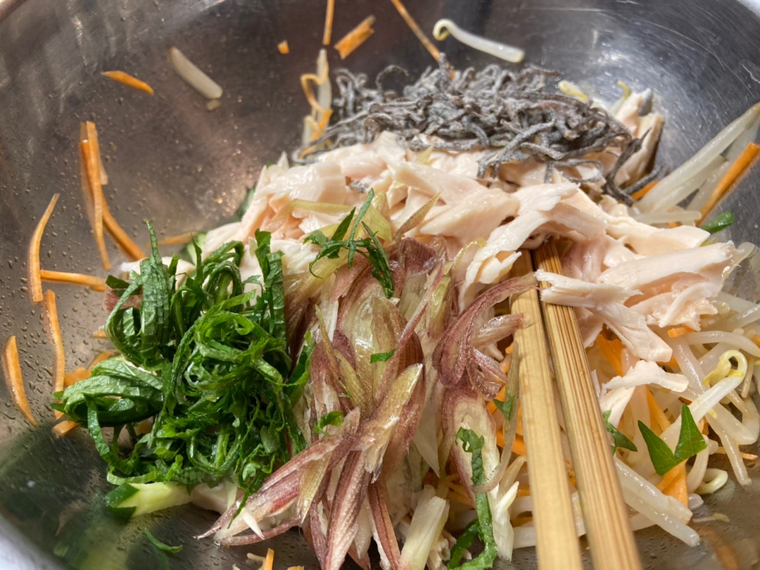 味付けはごま油、鶏ガラスープ、酢などいつものナムルと変わらないんですけど