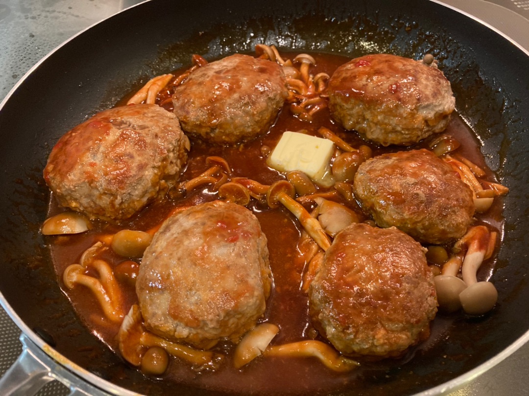 ハンバーグを焼く前にナスとパプリカを多めの油で揚げ焼きにしてめんつゆ+すし酢(かんたん酢)につけただけ!