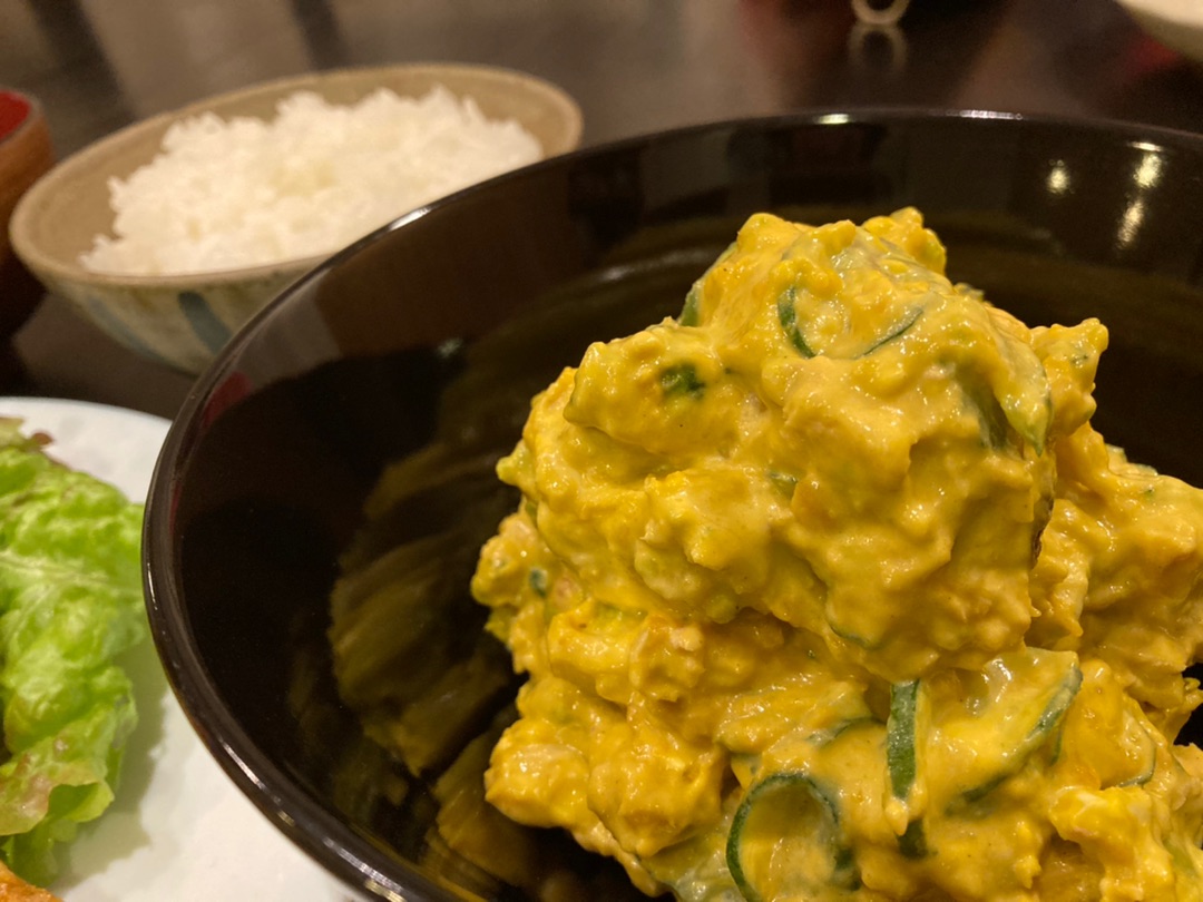 最近かぼちゃの デリ風サラダが多かったので昨日は久しぶりにマッシュしたサラダにしてみました。^^