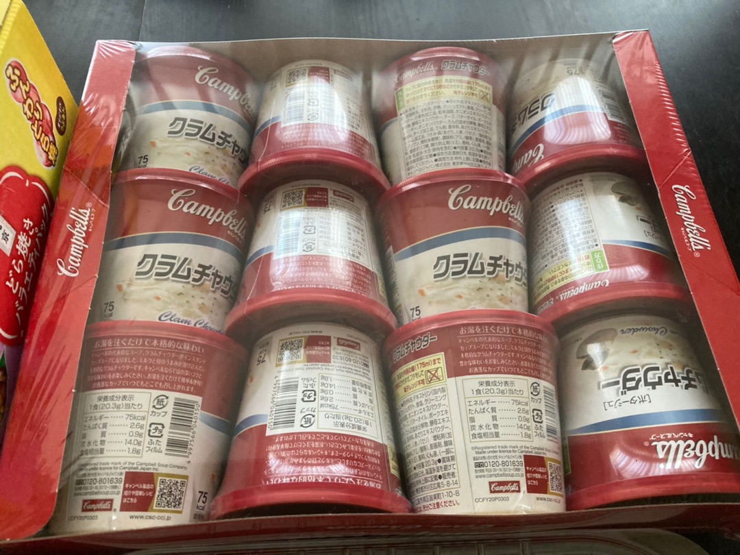 キャンベルのクラムチャウダーは12個で1,000円ちょっとだったかな?