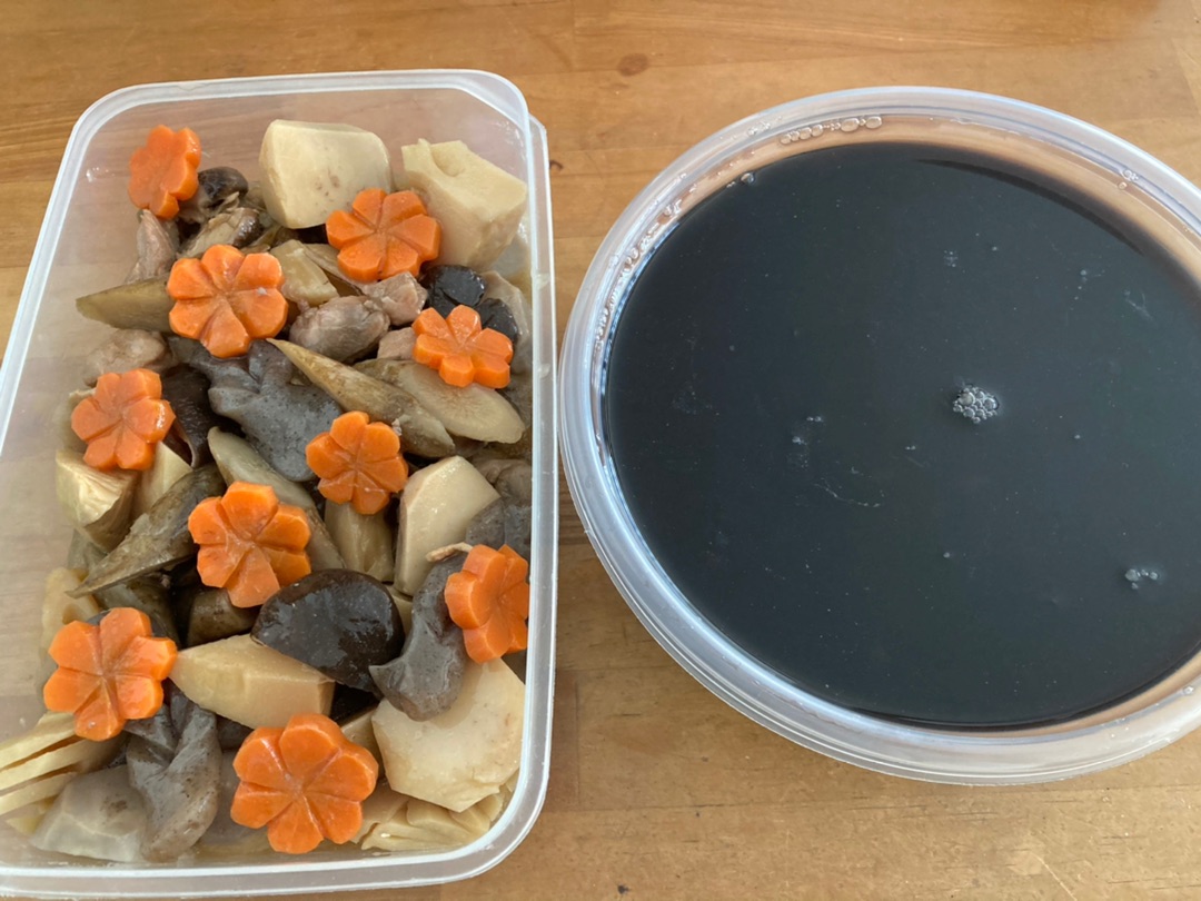 いつもはここに黒豆も入れるんだけど、今回は豆は完売してしまったので煮汁だけにしましたが、煮汁だけでも全然OKです!