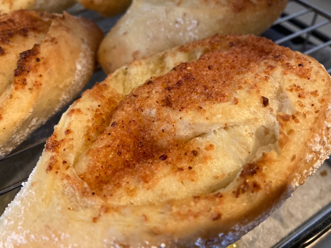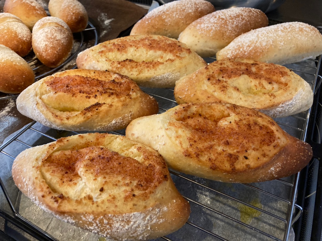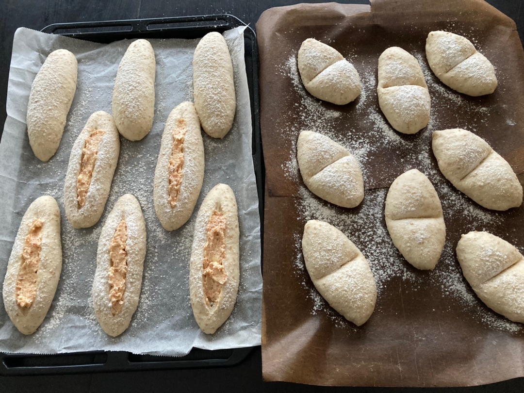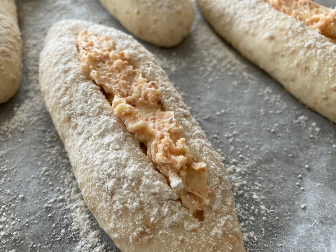 コッペパン型^^ あと、これも同じ生地で明太フランスっぽいのも作ってみました