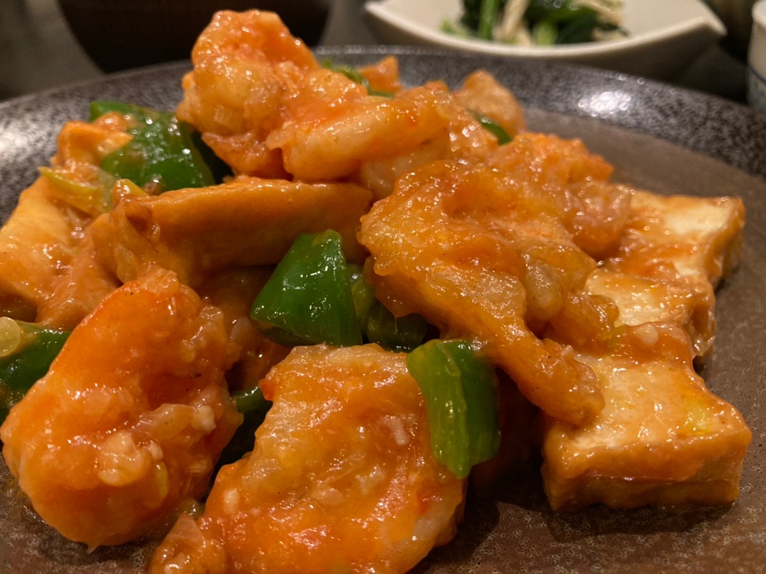 エビは少な目でも本格的チリソースで目を閉じて食べるとほぼエビチリです~!(笑)