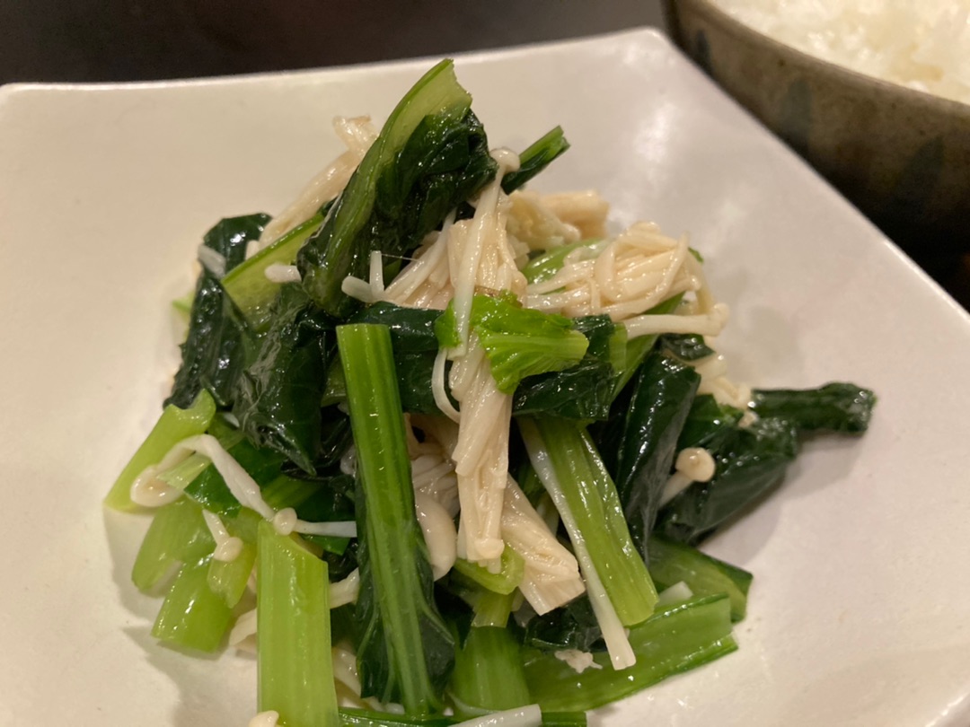 エノキと小松菜はさっと茹でて、