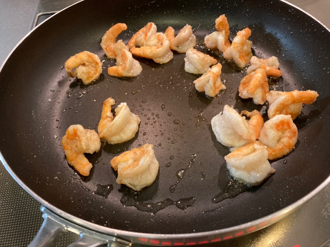 エビは表面が焼けたら一旦取り出して~
