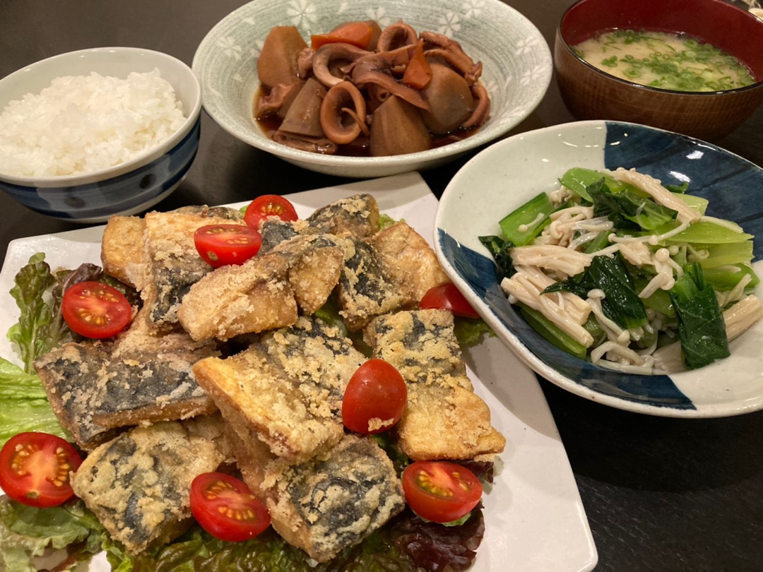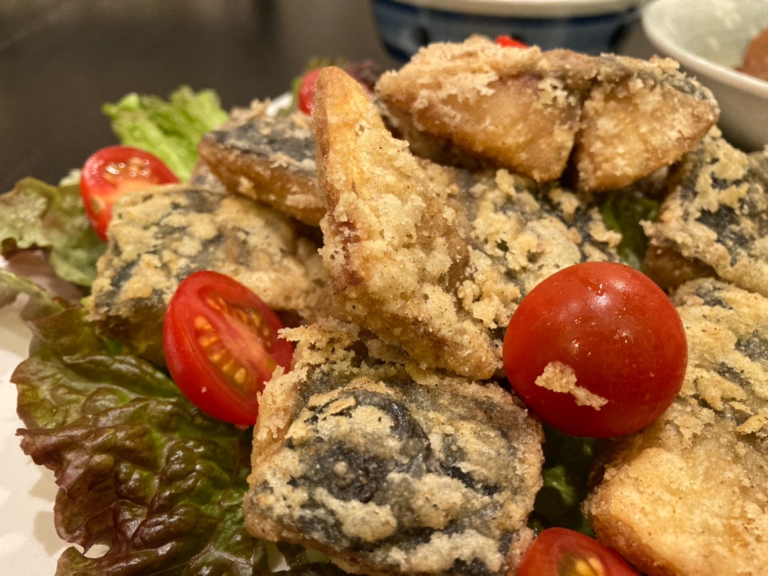 サバの竜田揚げ。骨なしの塩サバを使いました