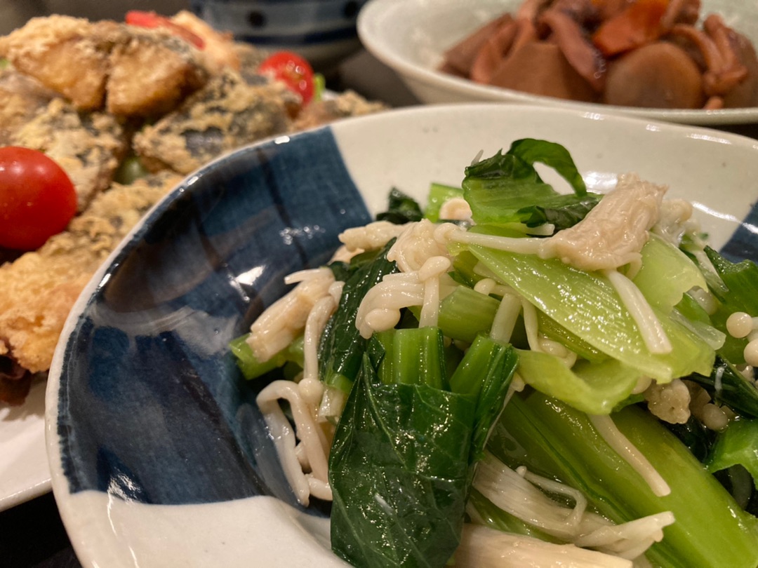 小松菜とエノキはさっと茹でて