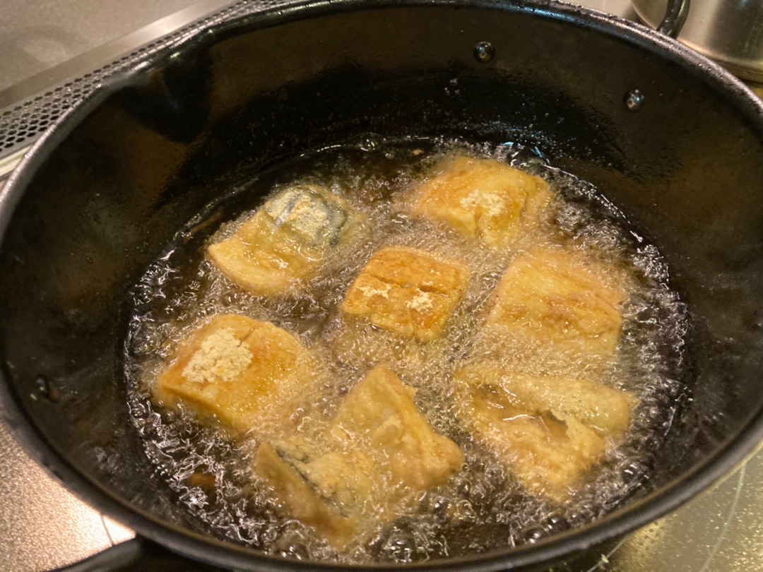 揚げているときからカレーの香りが~
