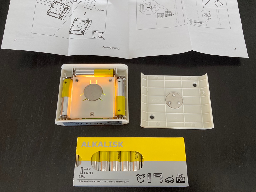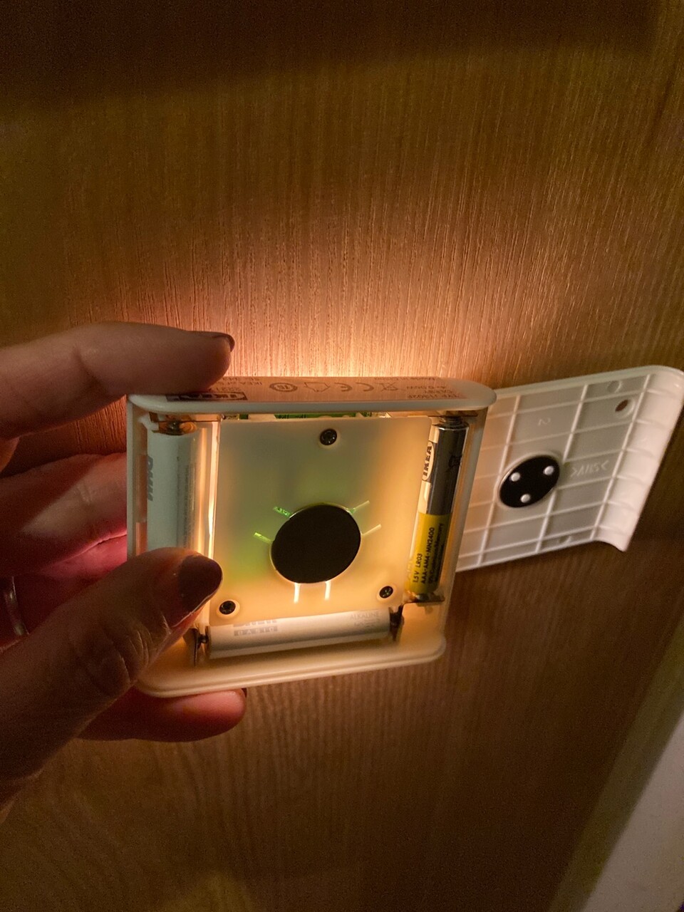 中に単4電池3個入れるだけ! 人感センサーなのか?動きを察知して点灯するみたいです