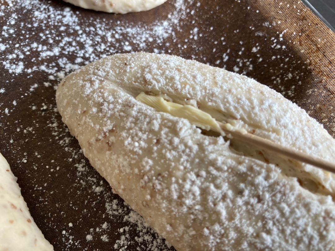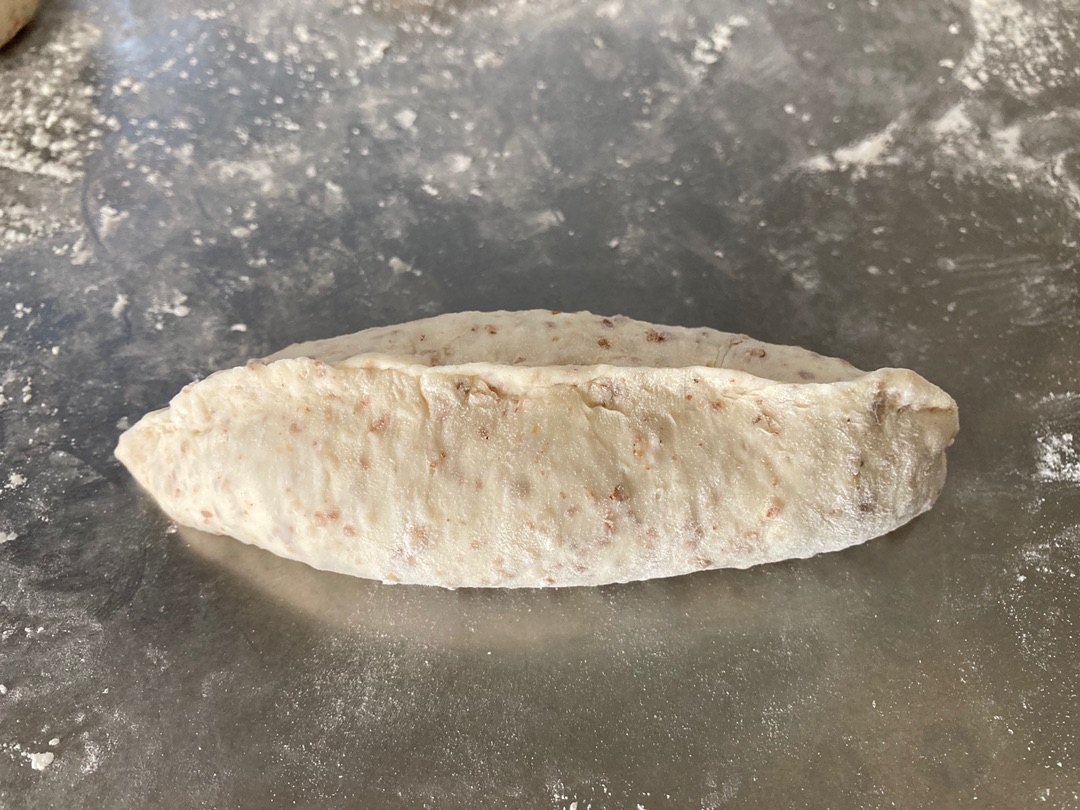 ベンチタイムが終わったらガス抜きをして楕円形に手で伸ばしたら・・・