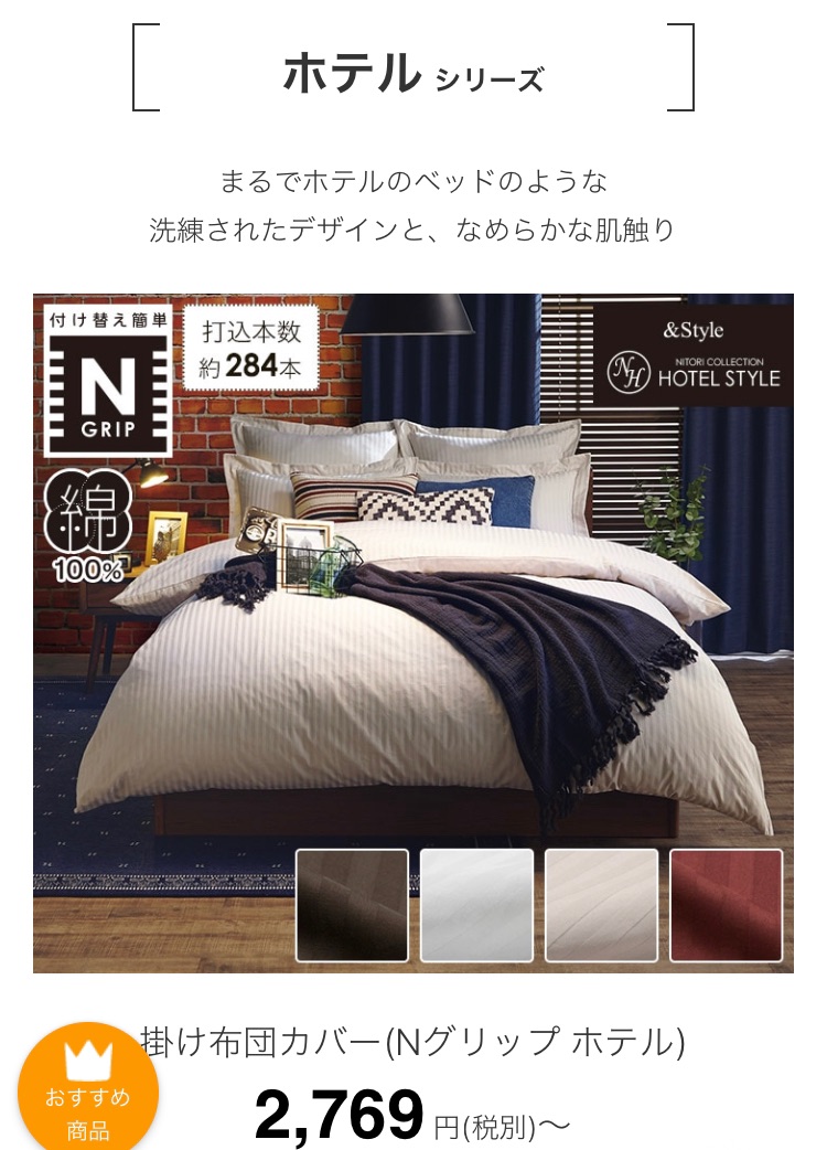 ちなみに今回買った掛け布団カバーはのはこちらのホテルシリーズです!^^