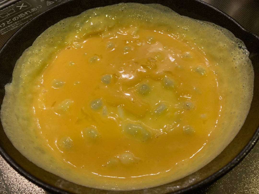 薄焼き卵はすぐに火が通るので卵はまだ半熟ぐらいがちょうどいいです