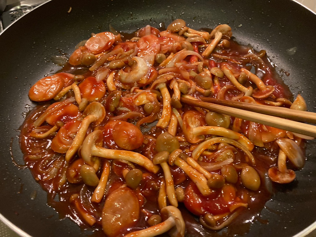 ケチャップ味のものは先に具材をケチャップで炒めておくと出来上がりの味にムラができません^^