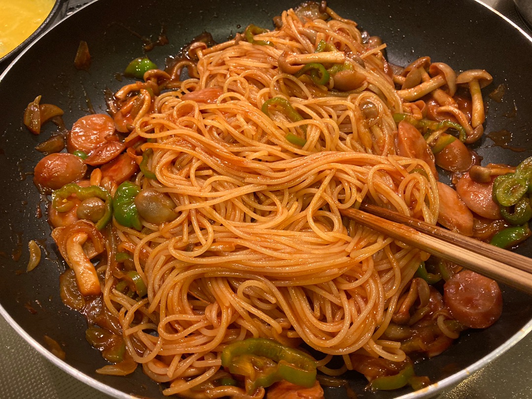 個人的な好みですが、ナポリタンのときは少し太めのパスタで、Noアルデンテのほうがおいしい気がしますね