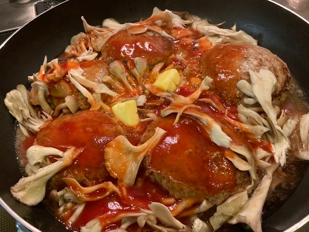 ハンバーグを片面焼いてひっくり返したところで