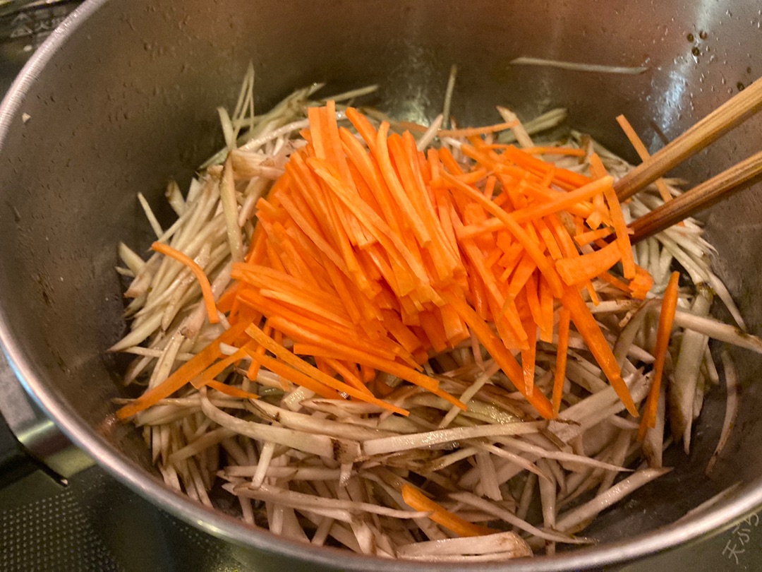 ただ、ごぼうは極細の千切りにすることと、最後に少しオイスターソースを入れるのがポイントです!