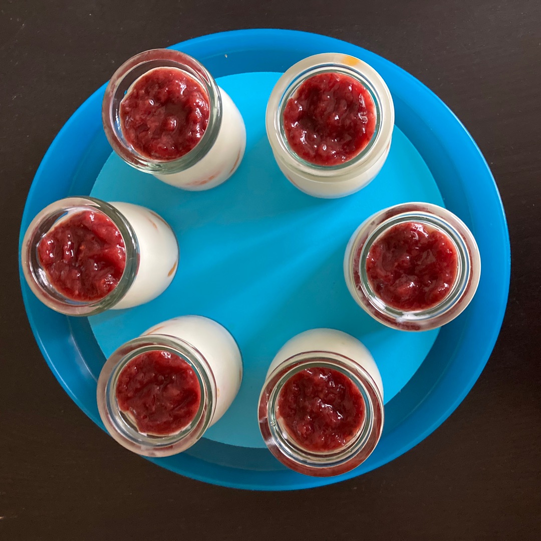 ヨーグルトは自家製ヨーグルト使用。週の初めに1リットル作るのでお菓子作りでたくさん使っても朝食用のヨーグルトは余裕で確保できます