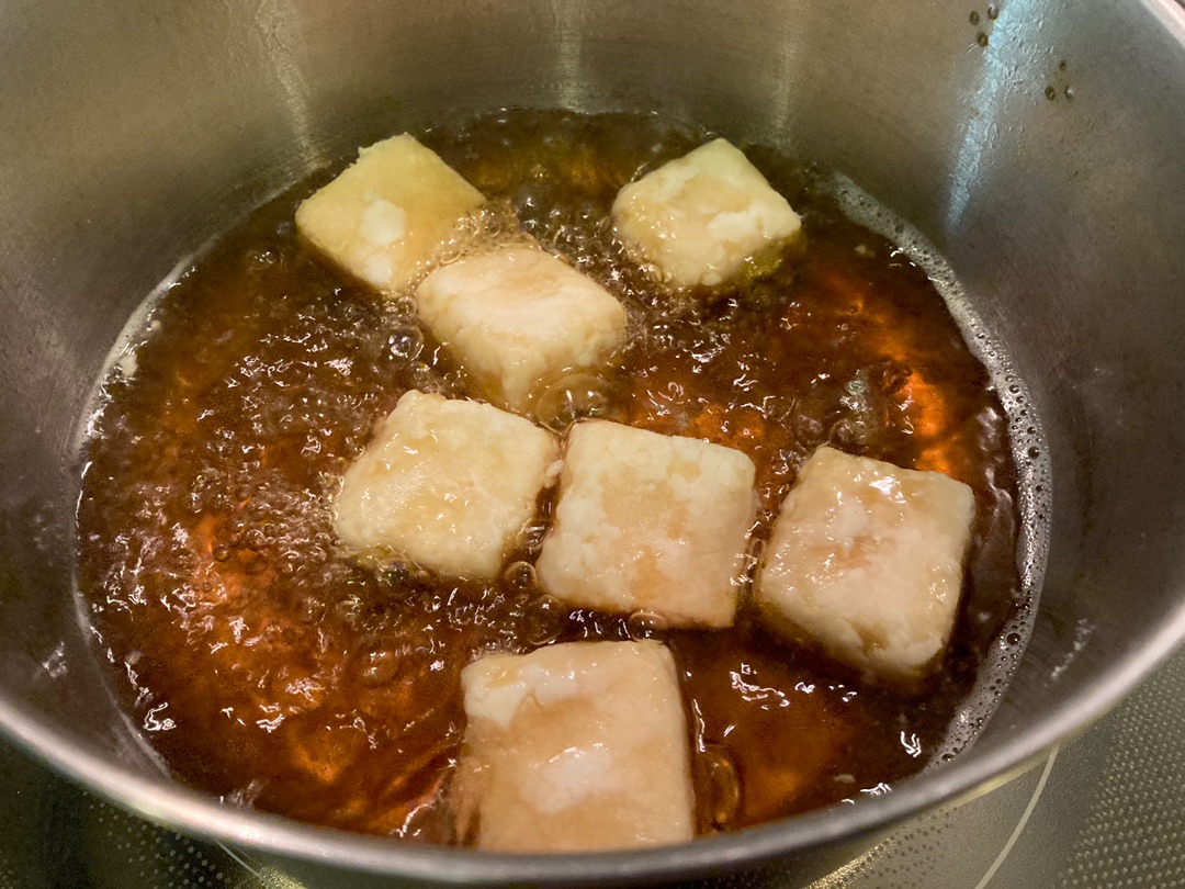 揚げ出し豆腐は水気が多いので油がはねたりすることも多いのですが