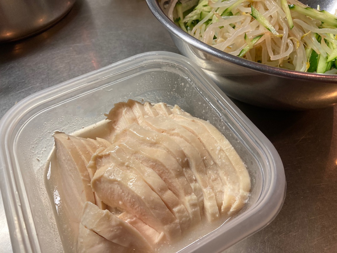 昨日はもやしときゅうり、あと自家製サラダチキンとキムチを入れました^^